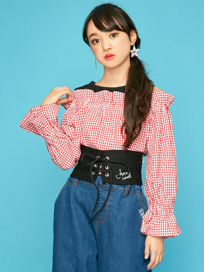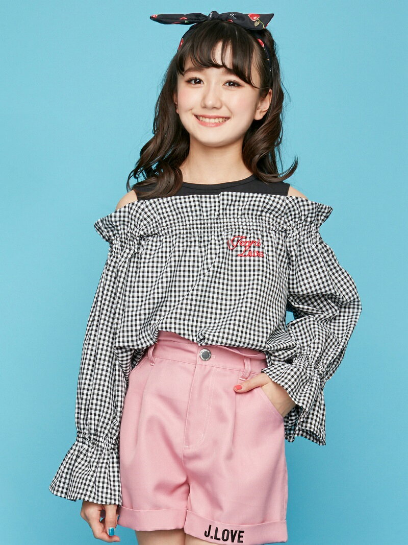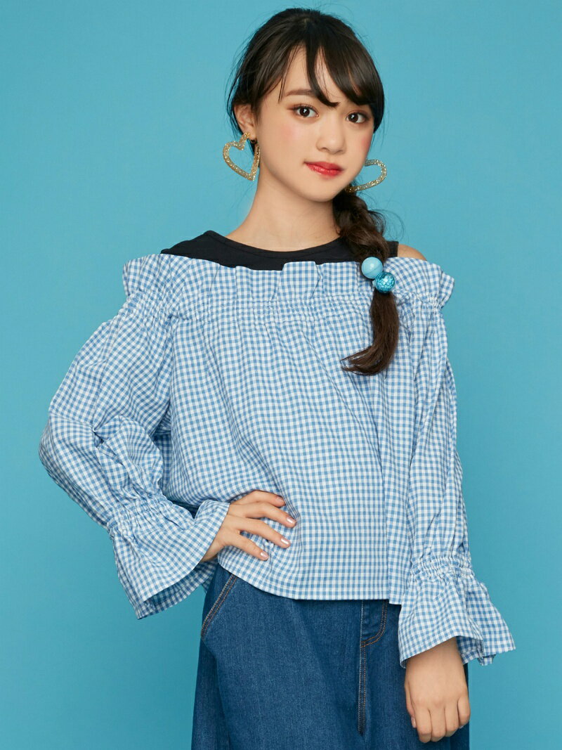 JENNI(ジェニィ)JENNI love/ギンガム2WAYトップスオフショルとトップス2WAYが楽しめる、おとなっぽアイテム登場肩まわりがゴムになっているので、簡単にオフショルコーデが可能に♪